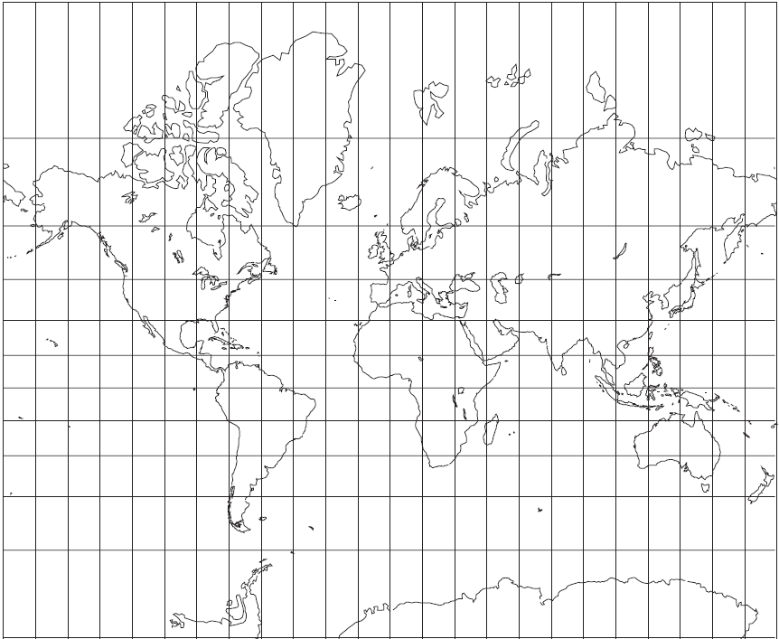The flip side is that along the equator, cylindrical projections have zero distortion, because there's no separation between the cylinder and the globe, no geometric transformation. Now suppose we could turn that cylinder 90° and wrap it around a meridian instead, then that meridian would be faithfully represented, and the area immediately around it minimally distorted. We could do that to any meridian, producing a true representation of any part of the world. If we then applied Mercator math to the surroundings, we'd have shape conformity. And by keeping those surroundings quite small, we could put a lid on the worst-case distortion, and be able to measure distances, bearings, everything, with minimal error. This is the concept behind transverse Mercator projections.