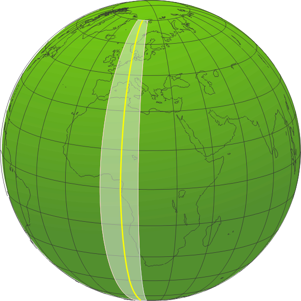 the yellow semi-circle (the illustration shows it in the 0°–15°E